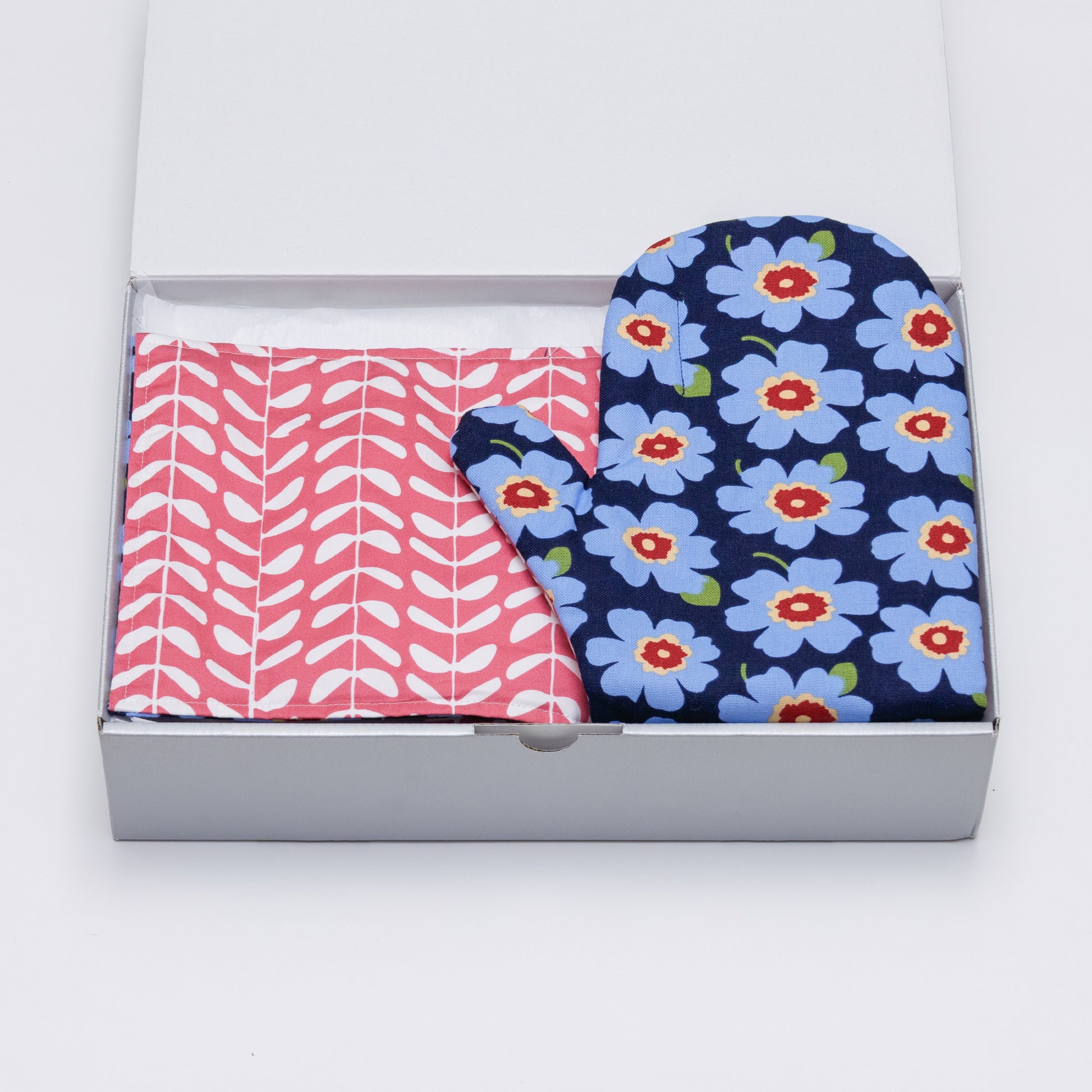 お揃い柄のミトンと鍋敷きは、見た目の可愛さだけでなく実用性も抜群。